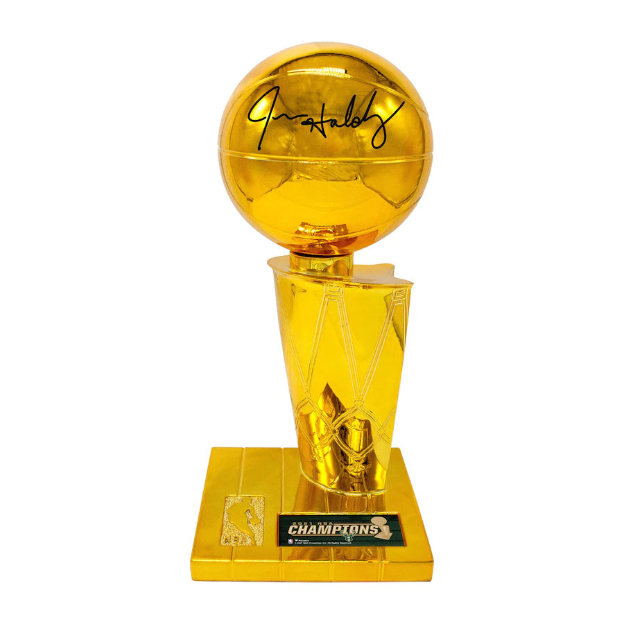 Jrue Holiday Milwaukee Bucks Autographed 2021 NBA Finals Champions 12 Replica Larry O'Brien Trophy with Sublimated Plate