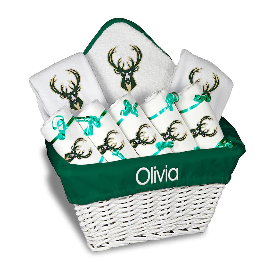 Milwaukee Bucks Newborn & Infant Personalized Large Gift Basket - White